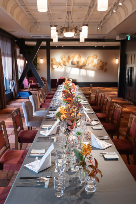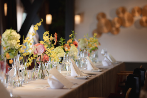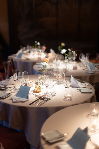 また、装花やテーブルクロスのカラーを変えるだけで、会場全体の雰囲気は大きく変わります。