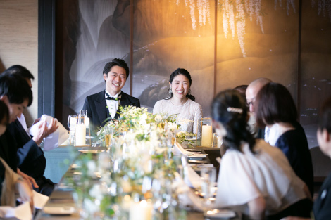 ゲストの皆様の中におふたりが溶け込むように座るスタイル