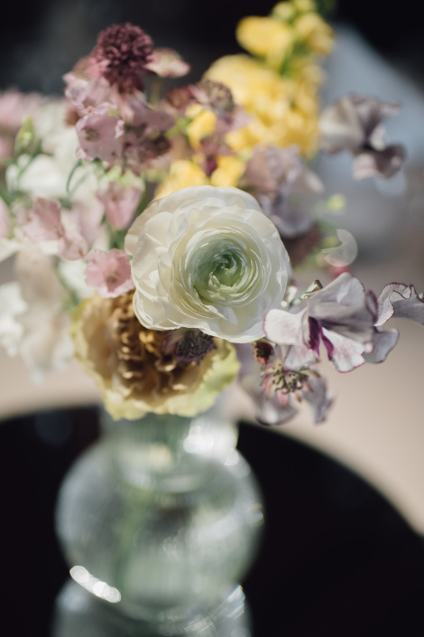会場は、スイートピーやチューリップなど春の花々で彩られました。