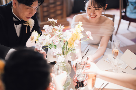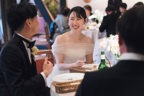 ゲストと過ごす時間を大事に、テーブルごとで新郎新婦様もお食事を楽しみ、温かな空気が会場を包みました。
